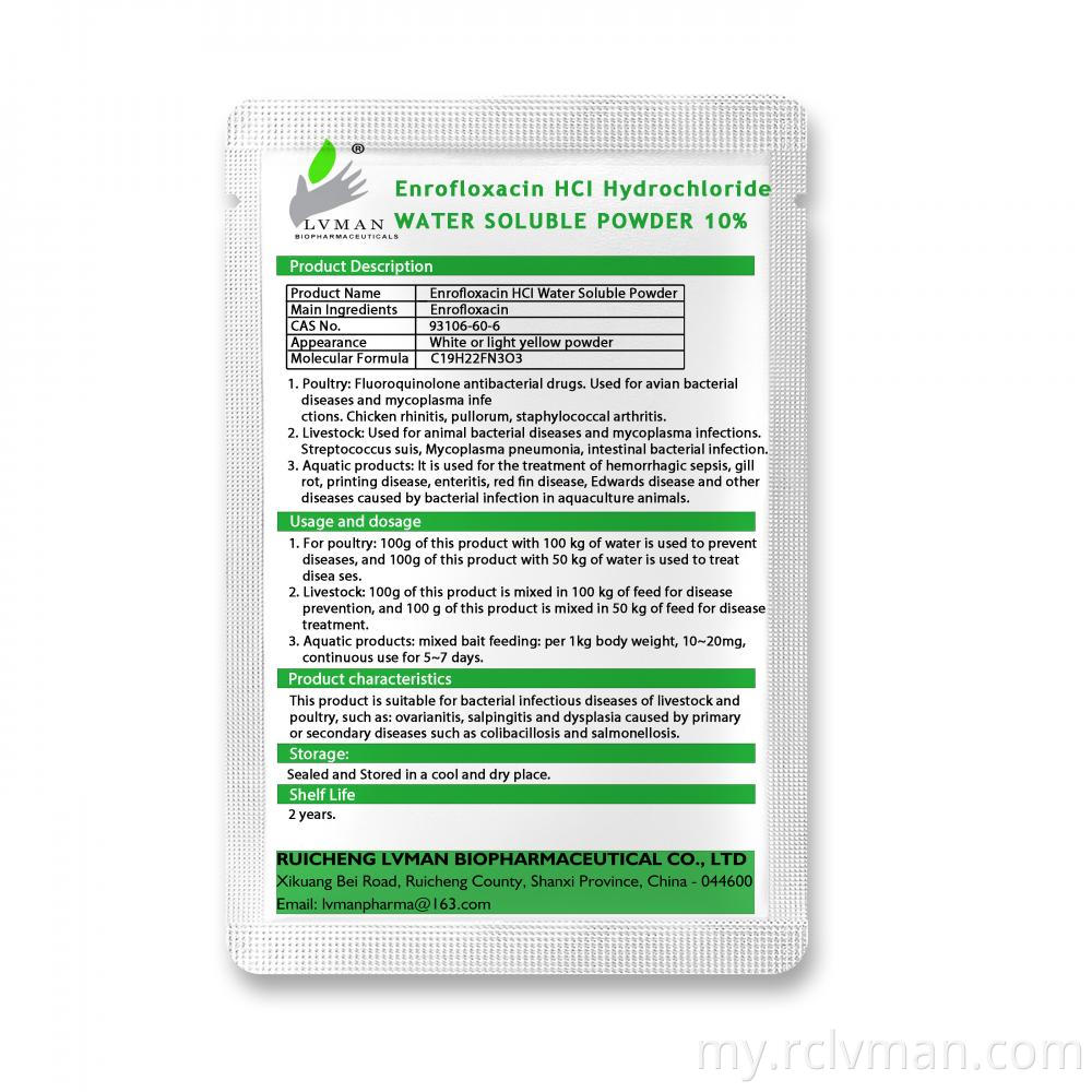 တိရိစ္ဆာန်အတွက် 10% enroflxacin hcacin hcl ရေကိုပျော်ဝင်နိုင်သောအမှုန့်